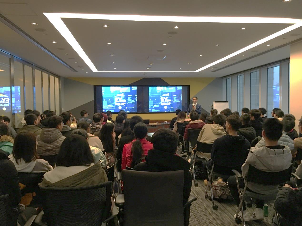 近日,18漫画 大一至大三本科学生骨干80余人应邀赴安永公司参加开放日活动。安永审计、税务、咨询业务线资深经理和人力资源经理悉数到场为学生们介绍公司概况、工作内容以及招聘信息。