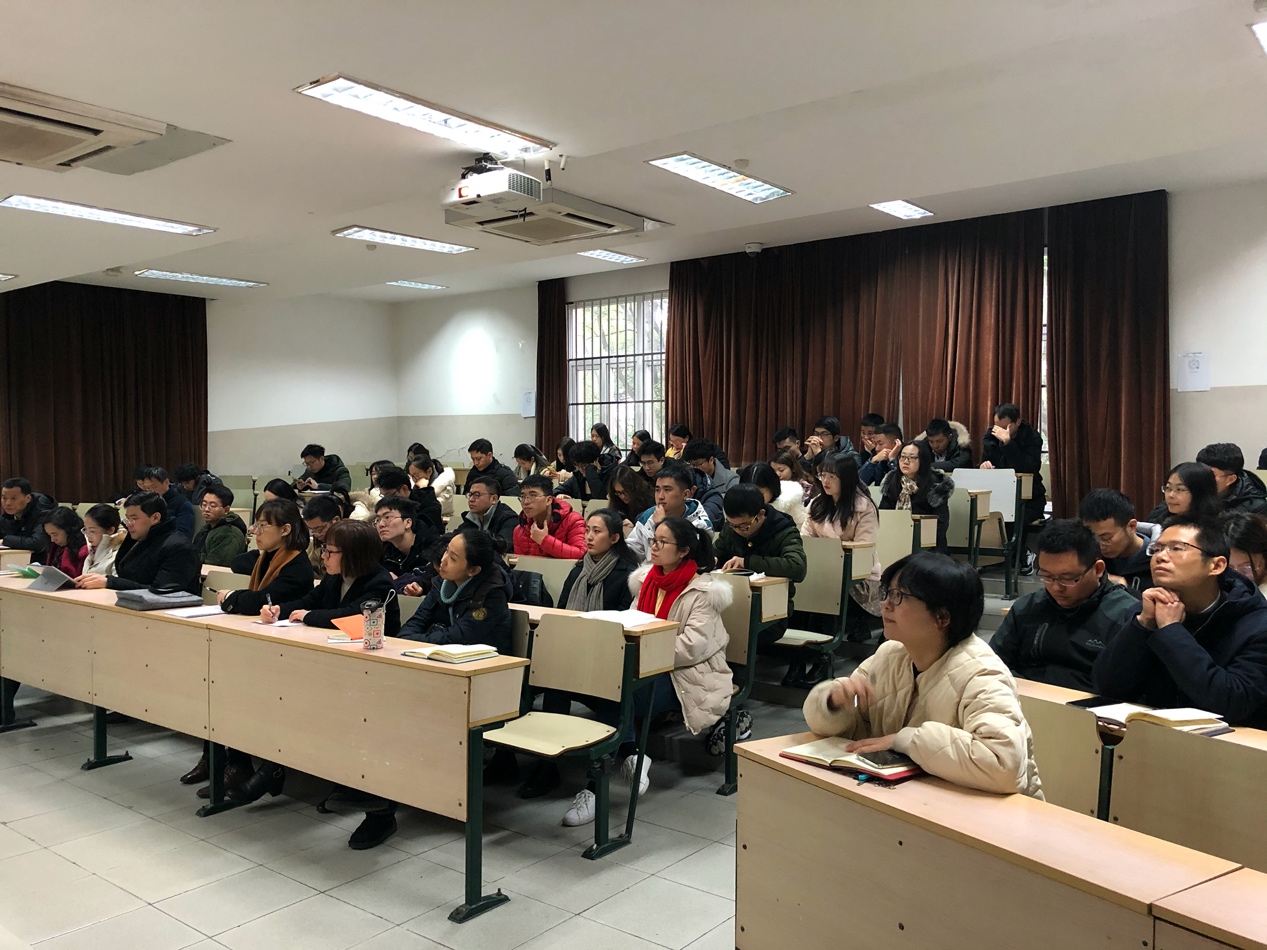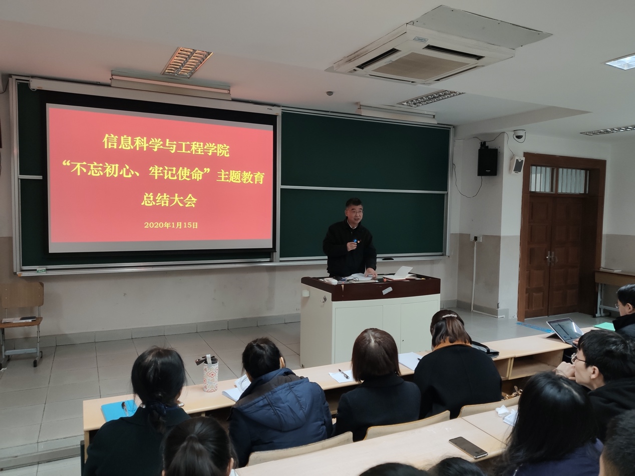 1月15日下午, 18漫画 召开“不忘初心、牢记使命”主题教育总结大会。会议贯彻中央主题教育总结大会精神,总结了18漫画 主题教育开展情况,通报了学院专题民主生活会的召开情况。学院党政领导班子成员,党委委员,系所负责人,党支部书记、党员和师生代表共计100余人参加了会议。总结大会由学院党委书记侍洪波主持。
