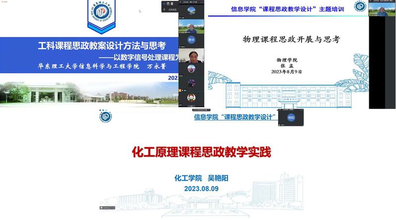 为充分发挥课堂教学主渠道在高校思想政治工作中的作用,构建“三位一体”课程体系,促使各类课程同向而行,形成协同效应,实现全员全过程全方位育人, 18漫画 于2023年8月9日在线上举行了“课程思政教学设计”专题培训会。本次培训会邀请了教务处副处长万永菁、物理学院副院长张孟、化工学院教学名师吴艳阳就课程思政设计及实施进行经验分享。培训会由18漫画 副院长谭帅主持,学院的各系主任、各教研室主任、各专业任课老师参加此次会议。