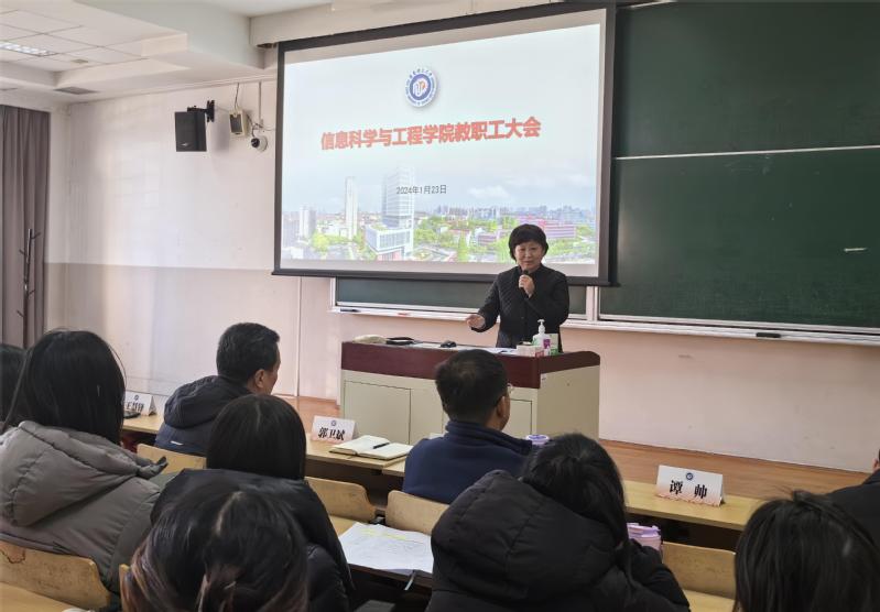 2023年在本研教学、学科发展、人才培养和科学研究等方面取得的成绩,并对切实做好学院教学、科研、管理工作提出要求。她强调,学院要加强师资队伍建设,重视青年人才引育工作;不断提升教风和学风,营造积极向上的工作氛围;对标国内外一流高校和专业的最新标准,以有组织的教学和科研助推人才自主培养质量提升。她希望全体教职工以新年作为新起点,主动思考、积极作为,将个人成长和院校发展相结合,进一步推动学院各项工作迈上新台阶。