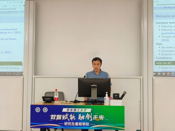 短暂茶歇后,谭昌耀(湖南工商大学)讲解题为“数据访问模式保护技术-ORAM”的研究成果,李特( 18漫画 )分享主题为“基于大数据分析的弓网参数反事实模型研究”的研究,付钰(青岛科技大学)带来“A Distributed and Secure Traffic Flow Prediction Framework Based on Federated Graph Learning”的分享,张振(东南大学)发表“Communication-efficient distributed cubic Newton with compressed lazy Hessians”的演讲。之后进入评分环节,老师们对以上同学的讲解进行了精彩的点评,最后在同学们的掌声中今天的学术交流落下帷幕。