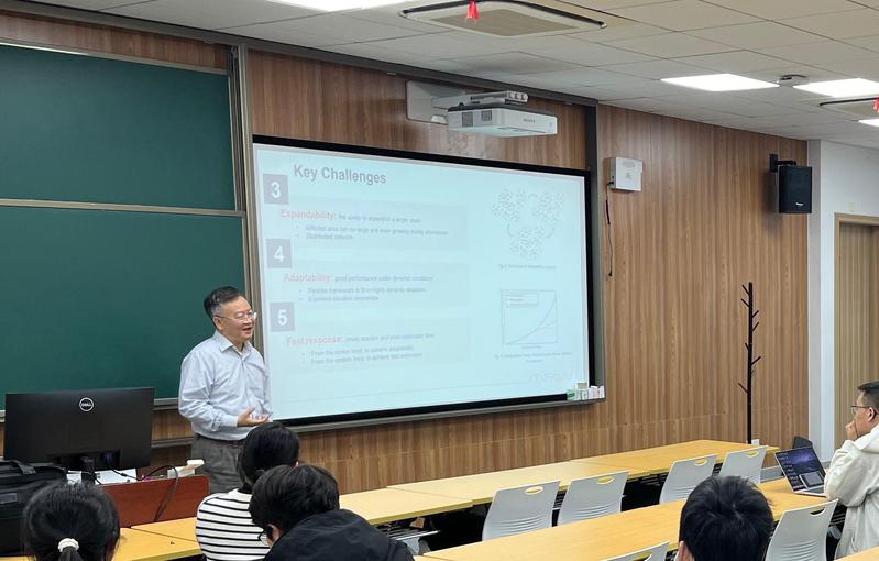 11⽉22⽇下午,华东理⼯⼤学邀请IEEE Fellow、上海交通大学Mo-Yuen Chow教授于奉贤校区开展了题为“Dynamic Microgrids and Energy Storages Management: Rethinking Microgrid Capabilities for Urgent Power Recovery in Disasters”的精彩讲座,旨在探讨灾害发⽣后如何迅速恢复电⼒供应,确保电⼒系统的可靠性和稳定性。本次讲座由信息科学与⼯程学院副院⻓和望利主持,并邀请了全校拔尖计划学⽣共同参与。